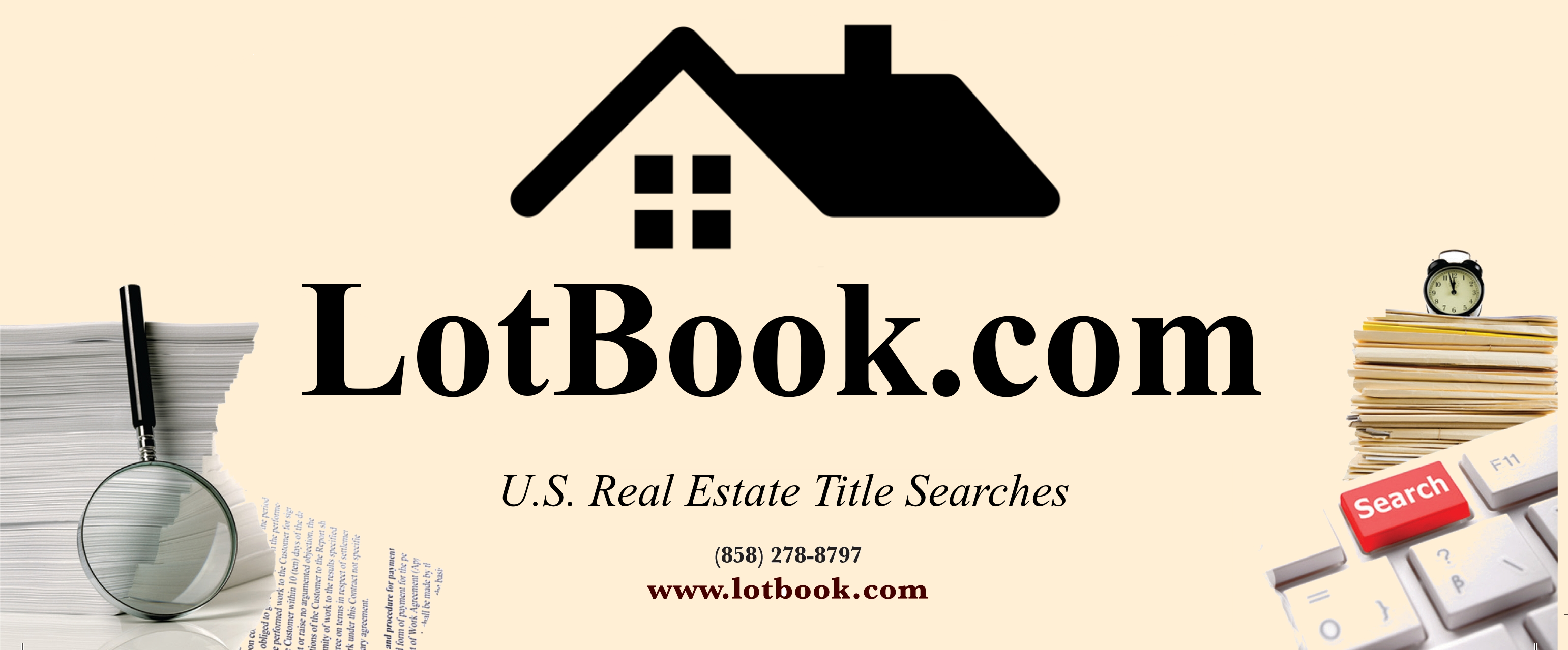 Welcome to LotBook.com specialists in Real Estate Title Searches for properties located in numerous nationwide counties. Please click on a button below to request a search and find out more about us.